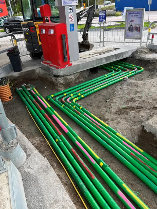 Vi utför till exempel konverteringar mellan olika bränslesorter, takbyggnationer, rördragningar, cisternnedläggningar, anpassningar för anläggningar i vattenskyddsområden och installationer eller byten av oljeavskiljare. För att möta miljökrav och skapa långsiktig driftsäkerhet arbetar vi även med åtgärder för täta spillzoner, saneringar och uppgraderingar av befintliga anläggningar. Vårt fokus ligger på att kombinera teknisk kvalitet med hållbara lösningar.